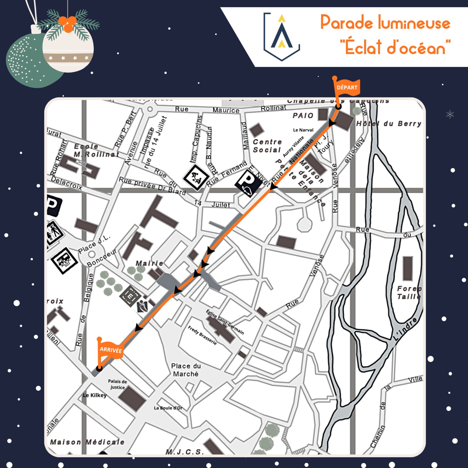 L’agence événementielle Aicom36 - Animations & Events vous invite à venir admirer la traditionnelle parade de Noël « Éclat d’Océan », ce samedi 20 décembre 2025, à partir de 18h30, dans le centre-ville de La Châtre.